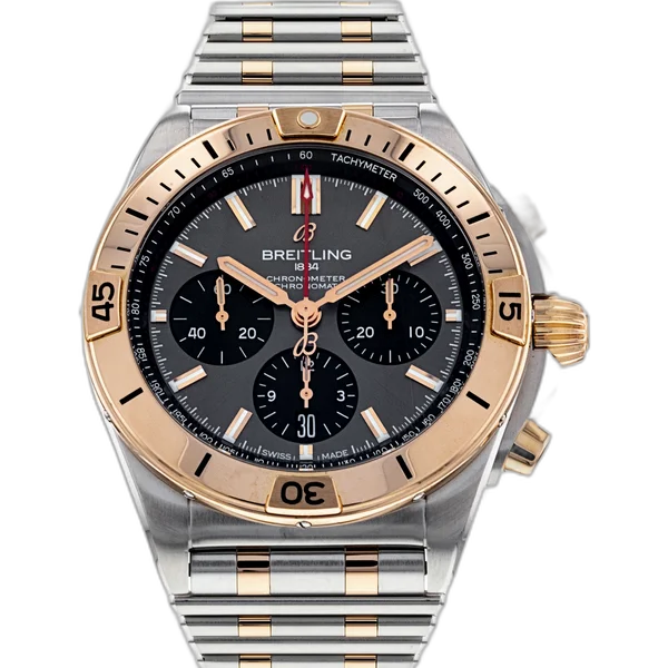 The Breitling UB Breitling UB0134 is a distinguished gold/steel timepiece featuring a 42mm case with 200M water resistance. This Chronomat B01 Chronograph 42 exemplifies the brand's commitment to horological excellence, combining sophisticated design with precision engineering. Each watch is crafted to the highest standards of Swiss watchmaking.