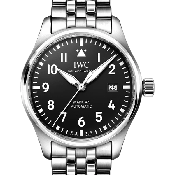 The IWC Pilot's Watch Mark XX Stainless Steel draws inspiration from aviation heritage, featuring exceptional legibility and robust construction designed for professional pilots. This 40mm steel timepiece offers 100M water resistance and is powered by IWC's renowned in-house manufactured movement. The watch demonstrates IWC Schaffhausen's commitment to precision engineering and technical innovation, combining Swiss watchmaking tradition with modern performance.
